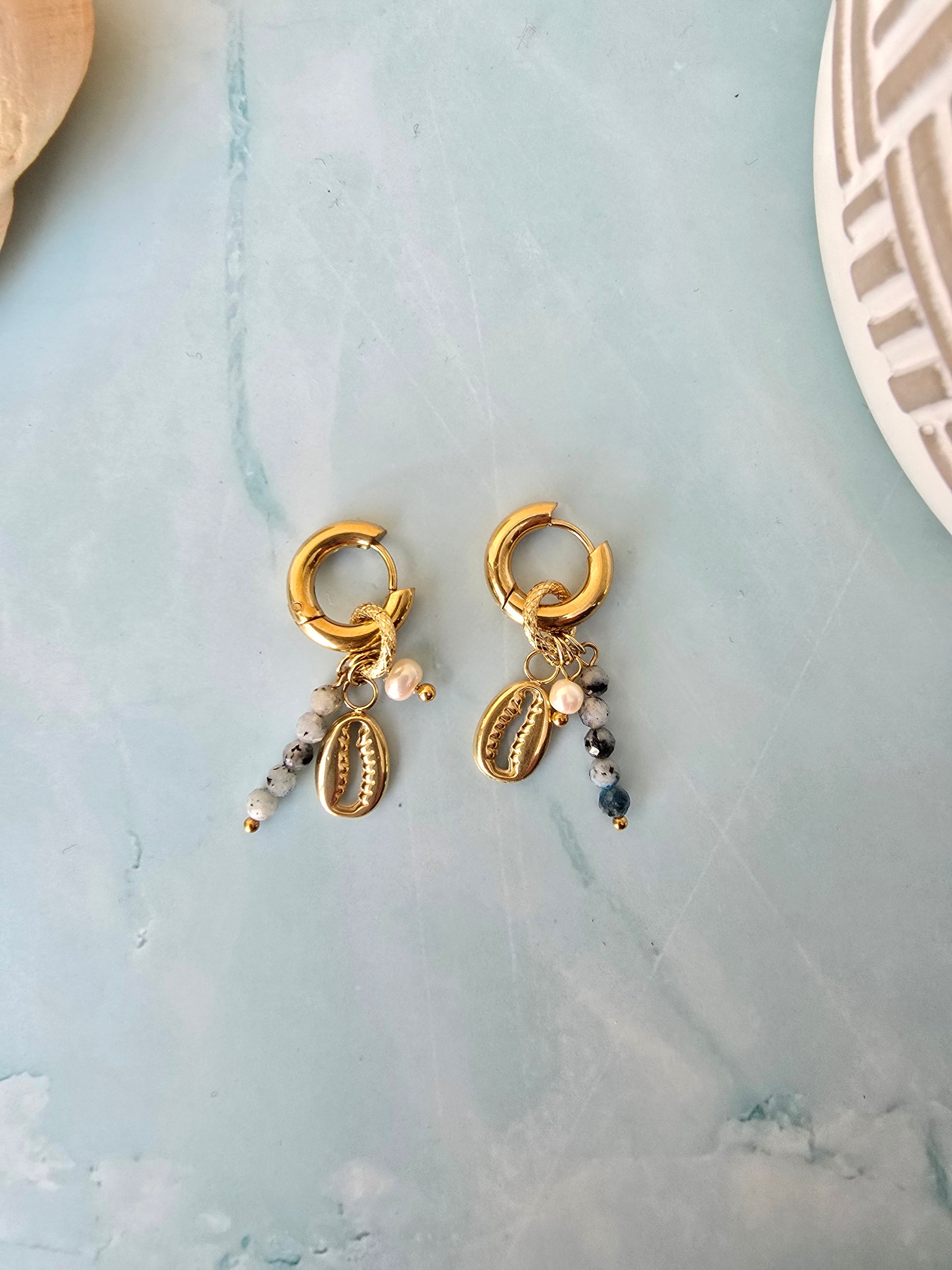 – Combo parfait : cauri, perle d’eau douce et pierres naturelles